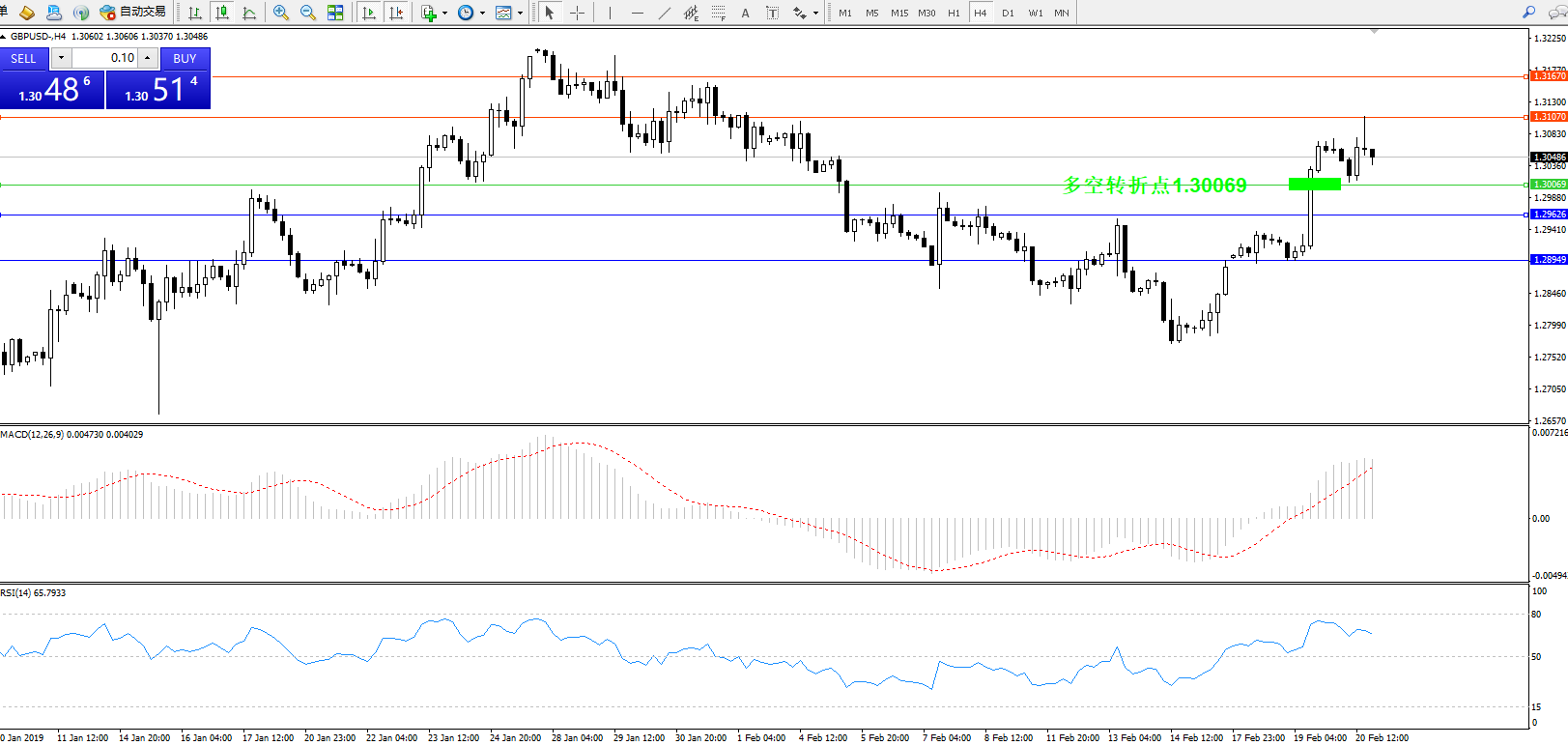 交易策略:1.30069上方看涨,目标1.31070、1.31670