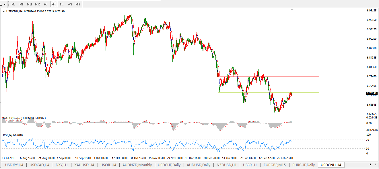 美元兑人民币USDCNH 4小时图: