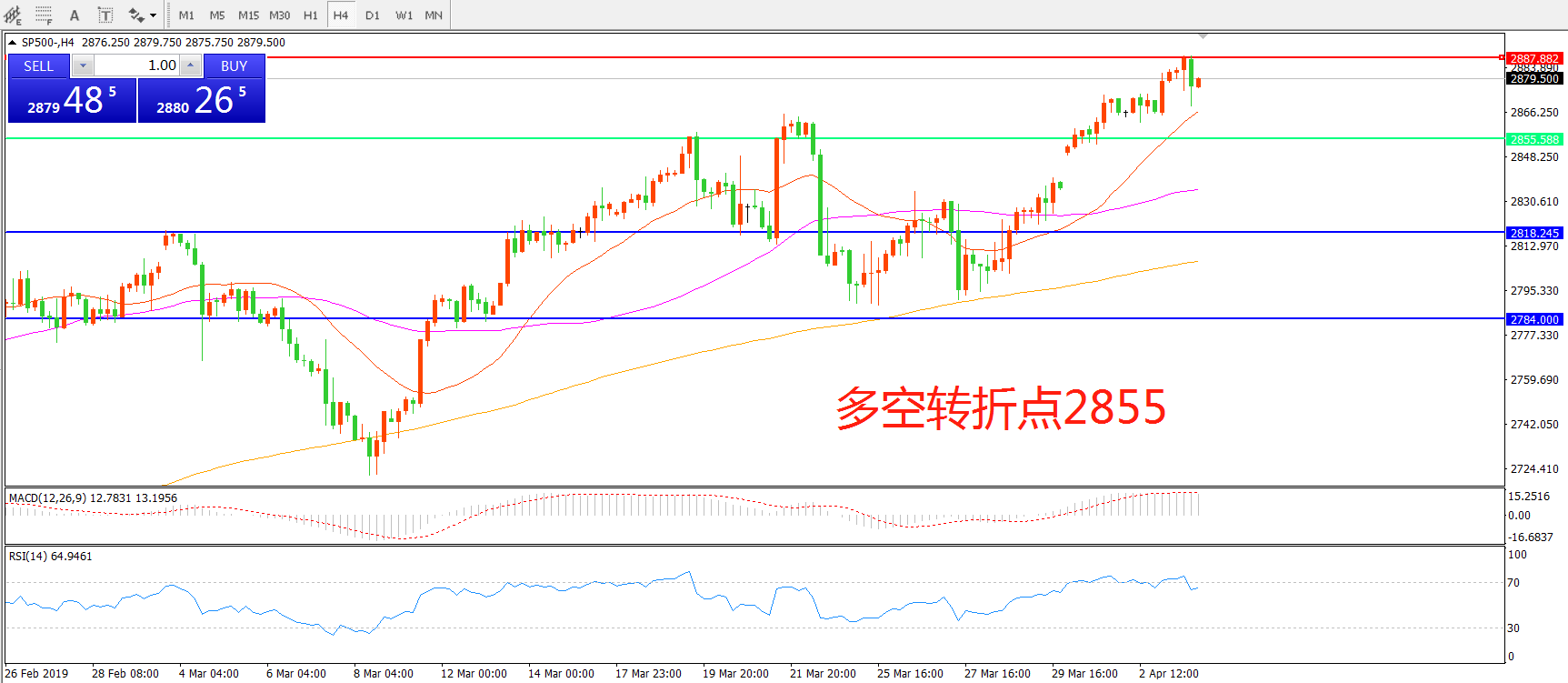 交易策略:在2855之上看涨,目标2887 2918