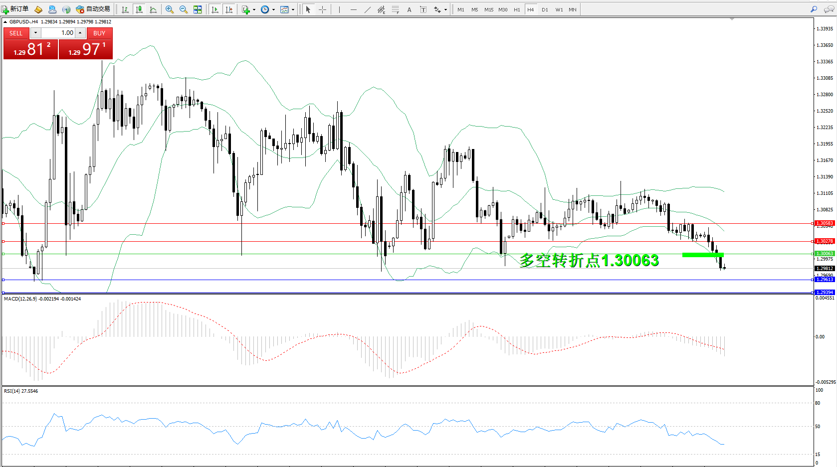 交易策略:1.30063下方看跌,目标1.29613、1.29394