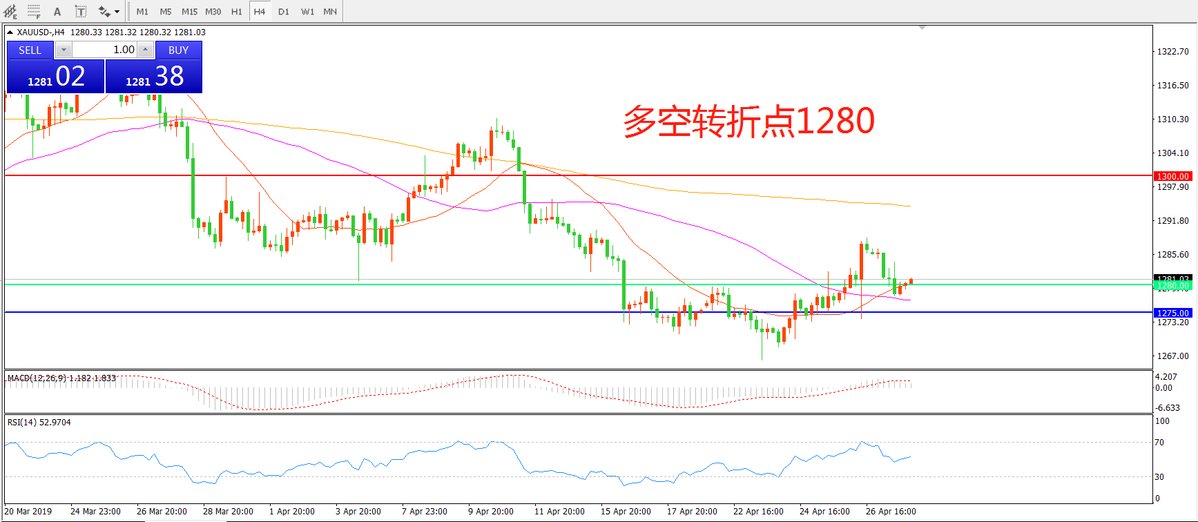 多空转折点:1280.00