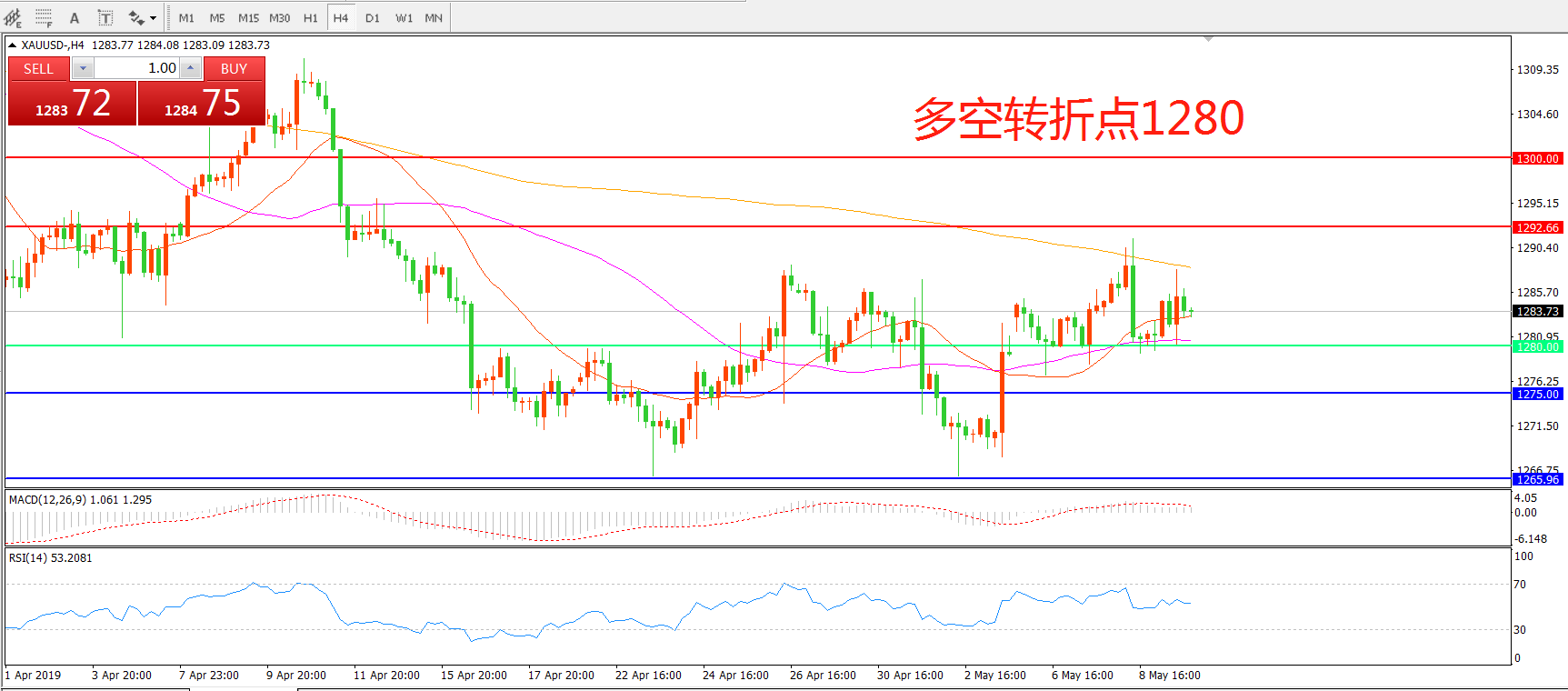 多空转折点:1280.00