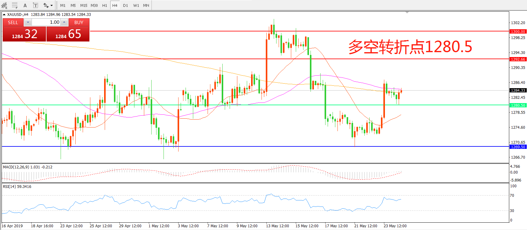 上周除了中美贸易局势依然牵动市场神经以外,英国脱欧也出现了很大变量。英国首相特雷莎梅周五强忍泪水宣布,她将辞职,在未能兑现带领英国退出欧盟承诺的情况下黯然离场。在努力寻求一份能得到议会批准的折衷退欧协议的过程中,特雷莎•梅经历了各种危机,她留给继任者的是,一个深陷分歧的国家,和一群在如何、何时以及是否退欧问题上陷入僵局的政治领导层。上周现货黄金在避险情绪的提振下,自周中开始强劲反弹,再次突破1280关口,最终收报1283.68美元/盎司。