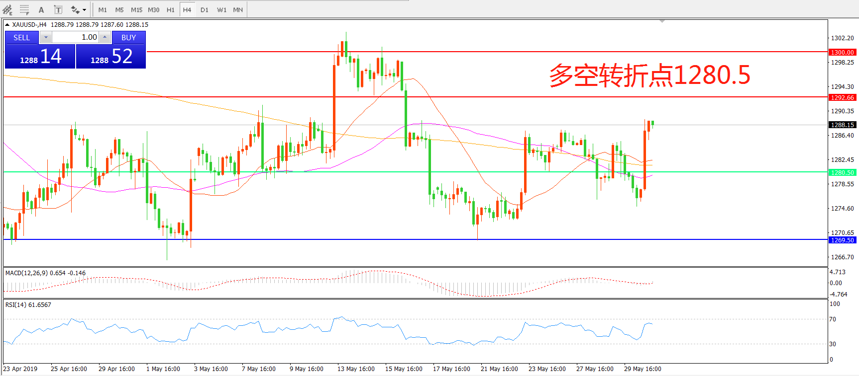 多空转折点:1280.50