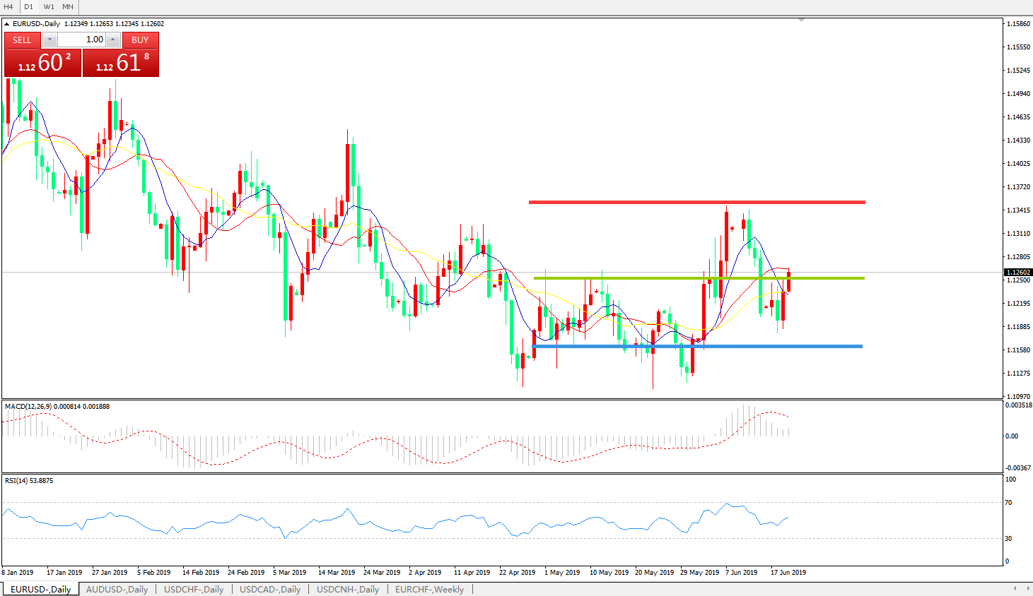 技术面简析:日图均线粘合无方向,汇价强势上攻击穿多空转折区域压制MACD运行于0轴上方且动能柱有再度放量迹象,RSI开始走高,预计汇价将进一步上行。