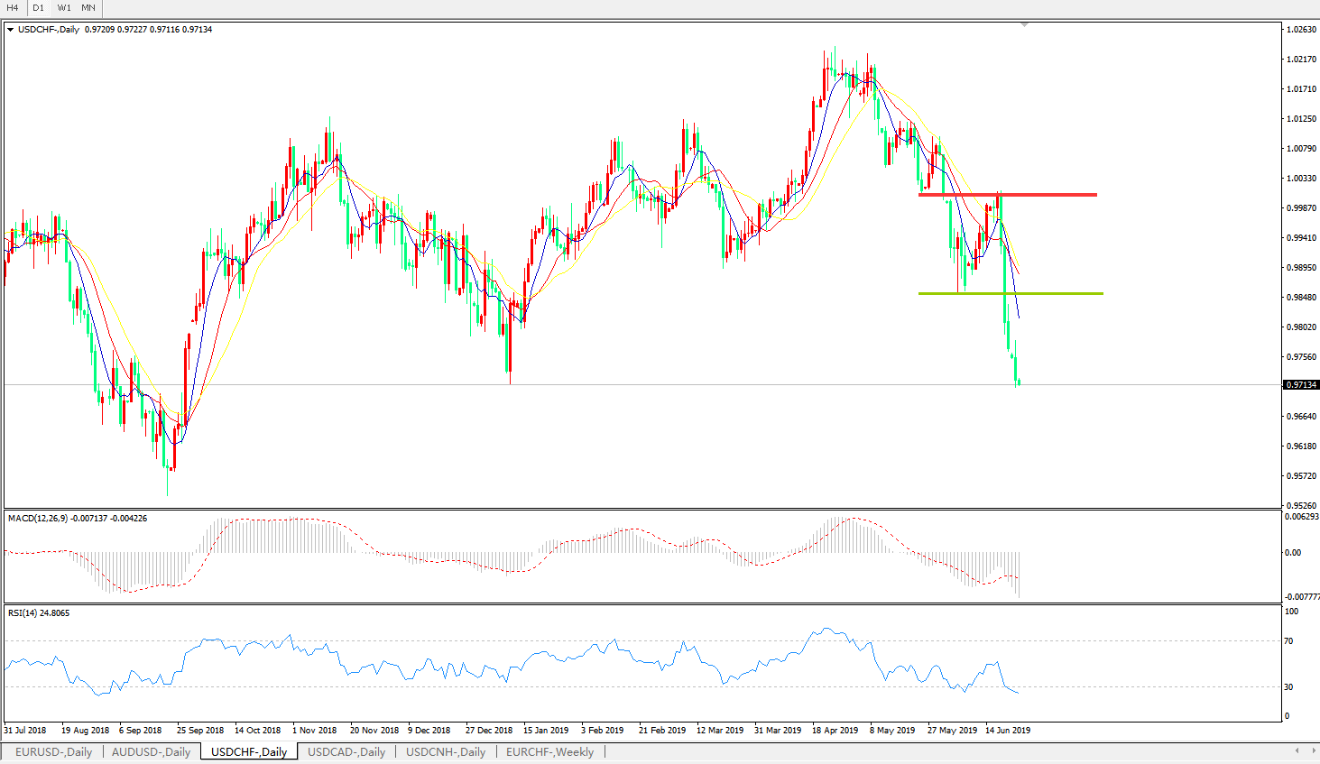 美元兑瑞郎USDCHF 日线图: