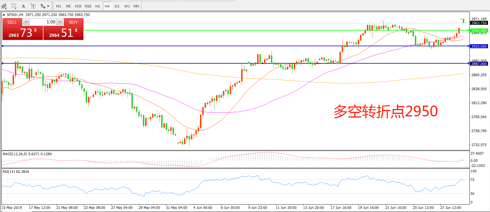多空转折点:2950.00