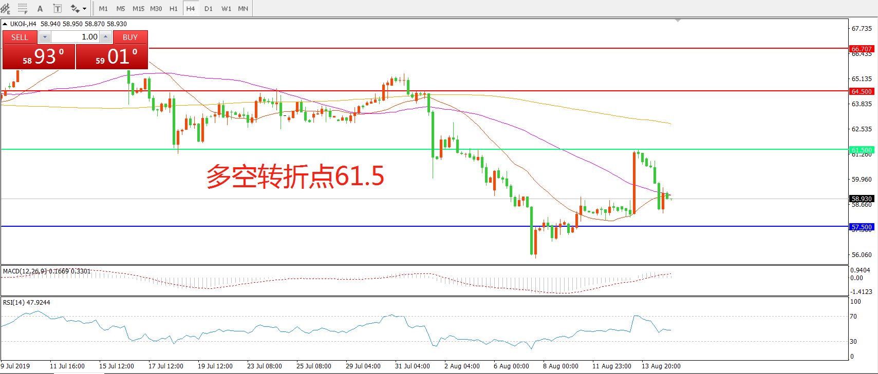 多空转折点:61.50