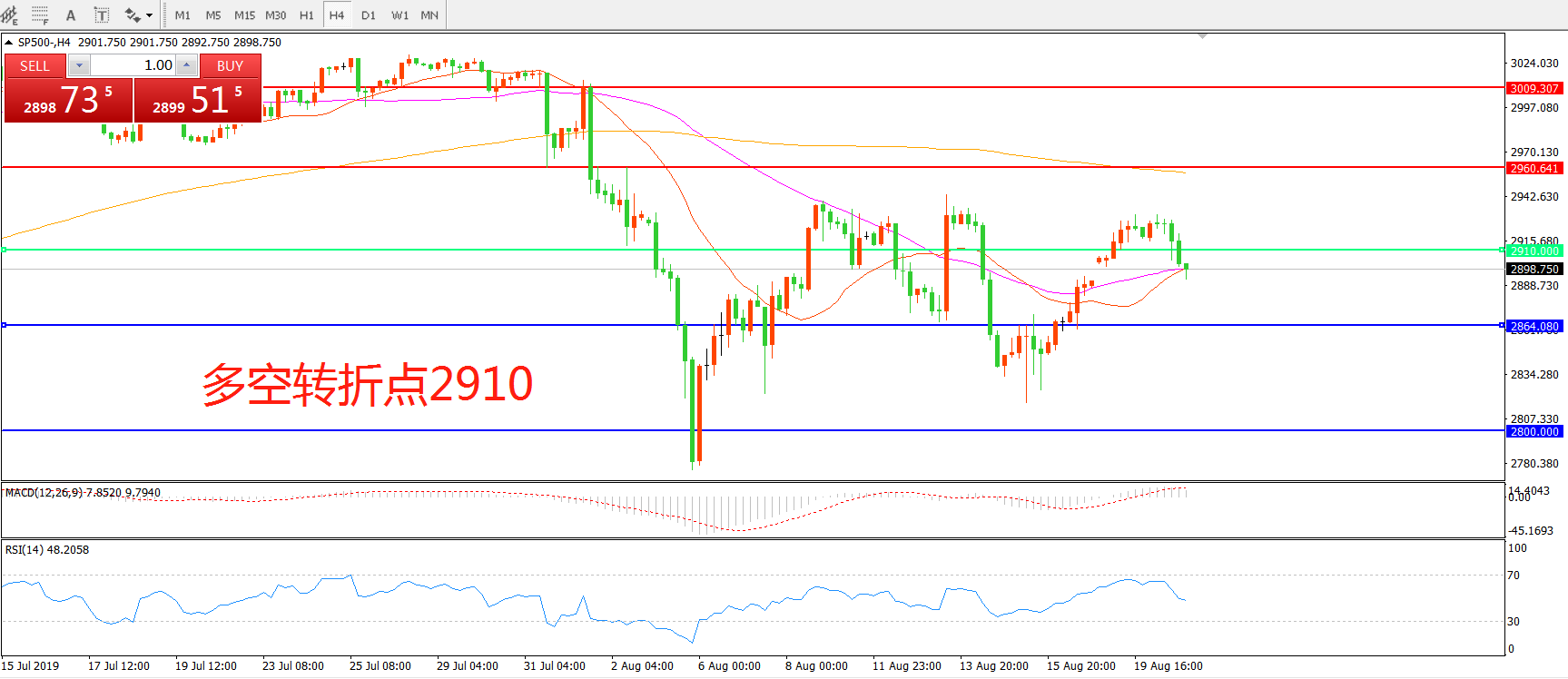 多空转折点:2910.00
