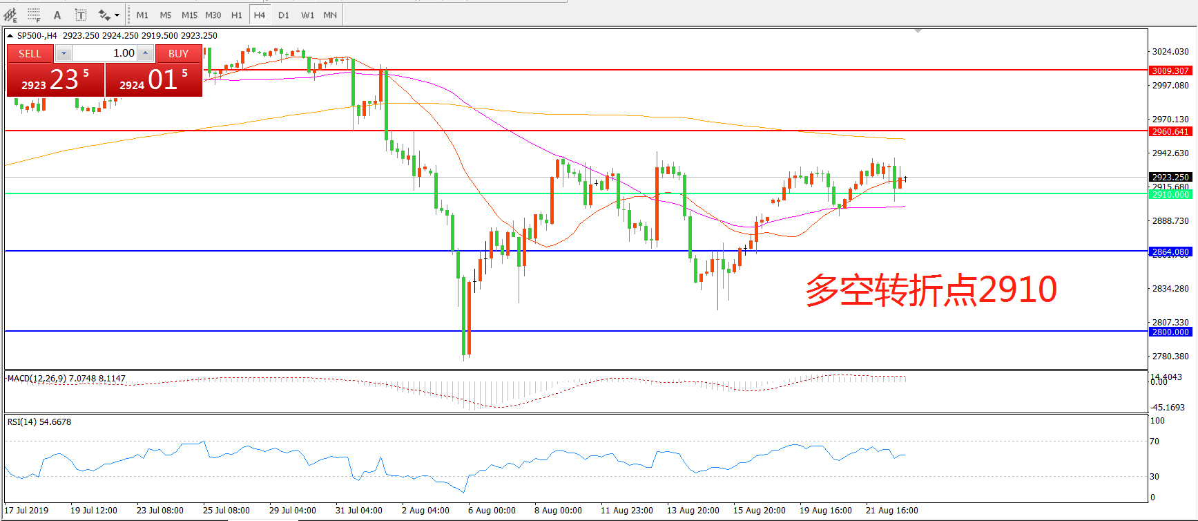 多空转折点:2910.00