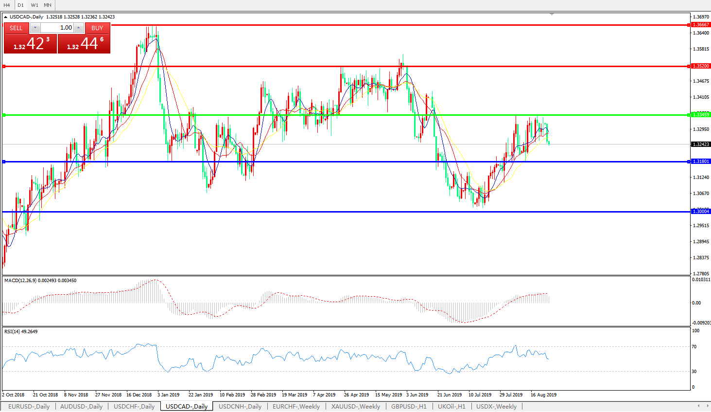 美元兑加元USDCAD    日线