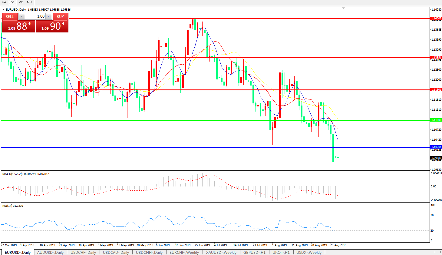 欧元兑美元EURUSD   日线: