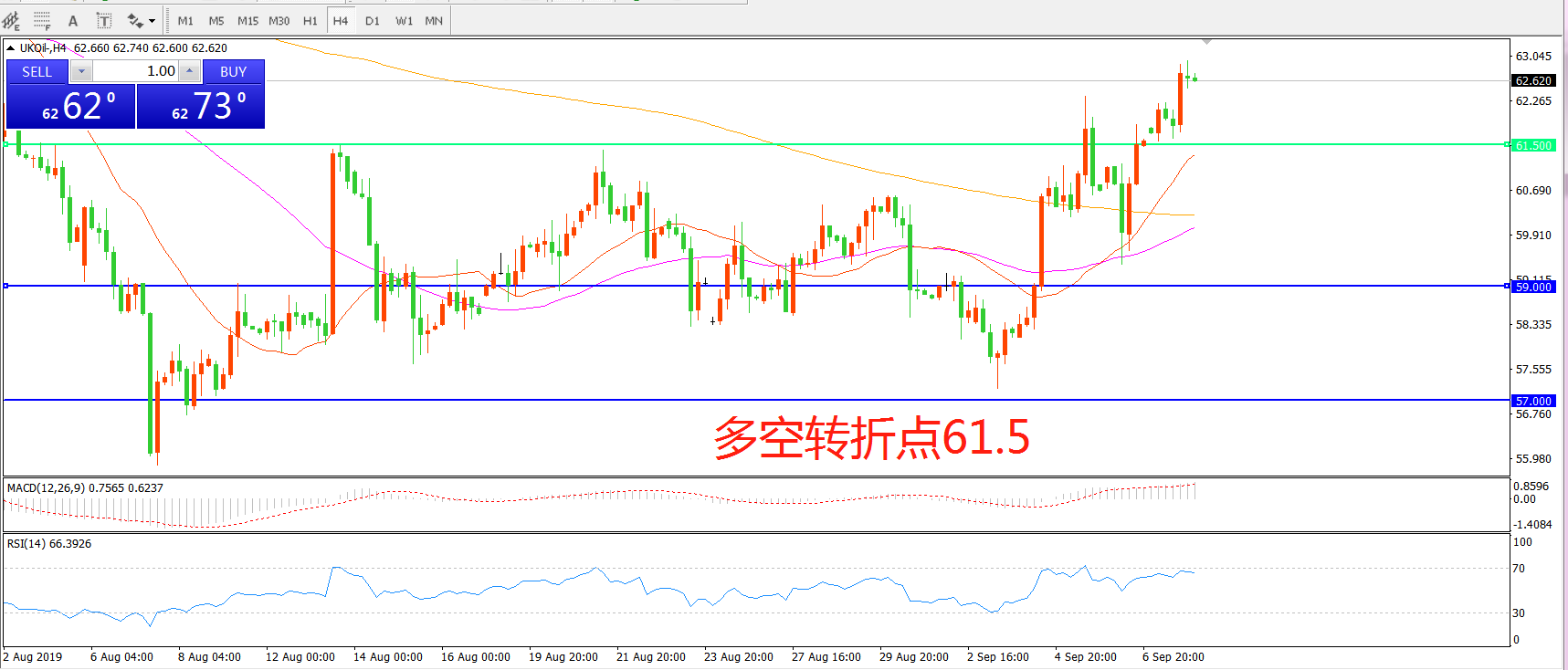 多空转折点:61.50