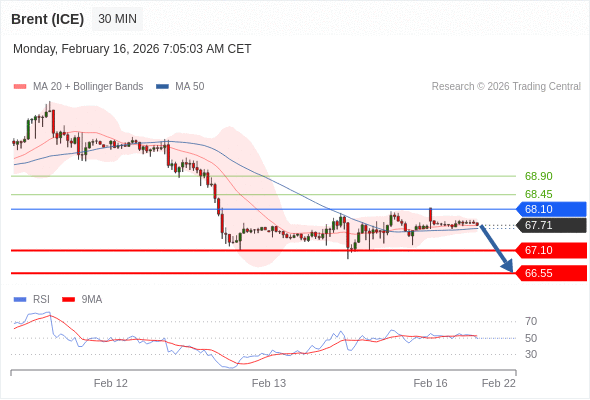 在 68.10 之下,看跌,目标价位为 67.10 ,然后为 66.55 。