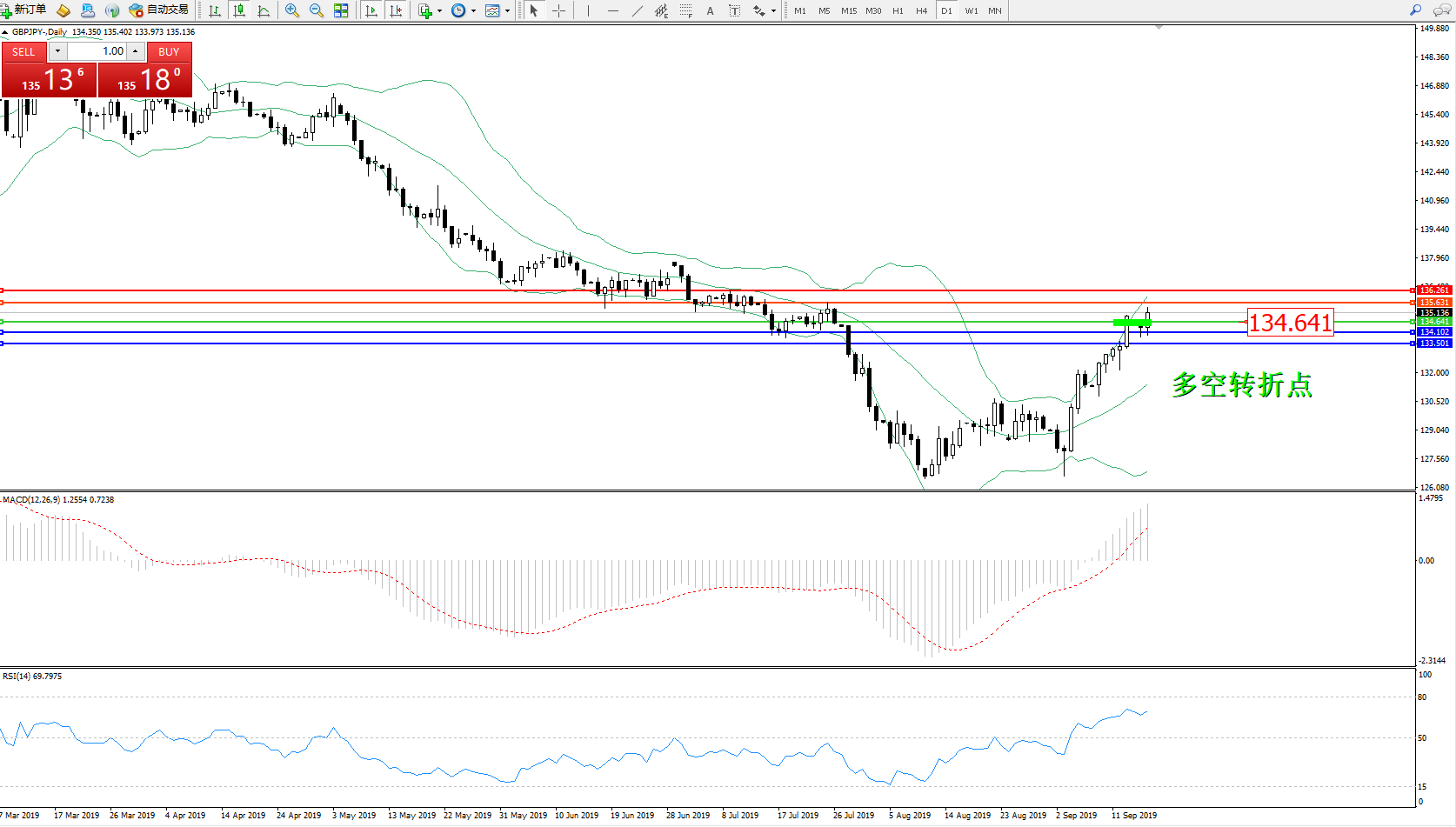 交易策略:134.641上方看涨,目标135.631136.261