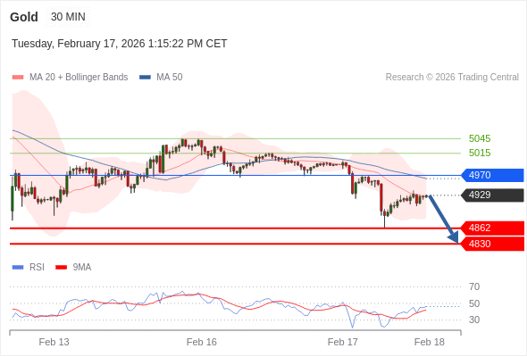 在 4970 之下,看跌,目标价位为 4862 ,然后为 4830 。