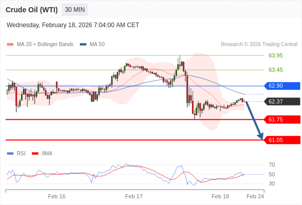 交易策略: 在 62.90 之下,看跌,目标价位为 61.75 ,然后为 61.05 。