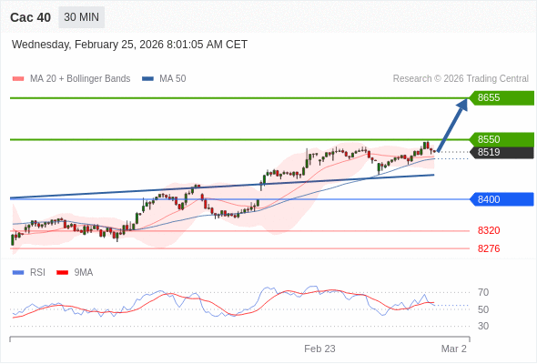 在 8400 之上,看涨,目标价位为 8550 ,然后为 8655 。