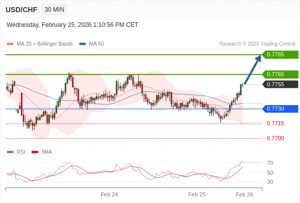 在 0.7730 之上,看涨,目标价位为 0.7765 ,然后为 0.7785 。