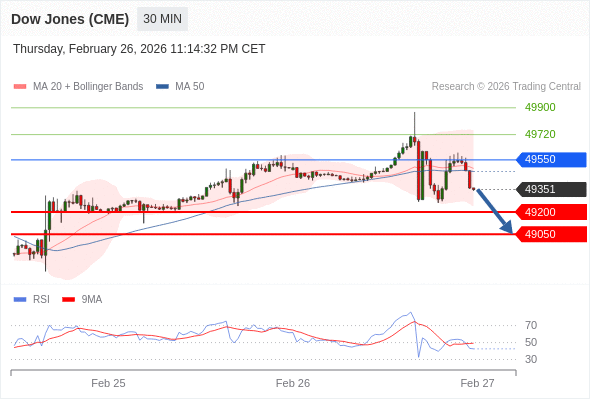 在 49550 之下,看跌,目标价位为 49200 ,然后为 49050 。