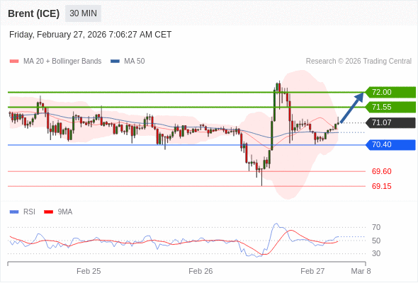 在 70.40 之上,看涨,目标价位为 71.55 ,然后为 72.00 。