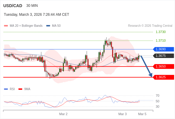 在 1.3690 之下,看跌,目标价位为 1.3650 ,然后为 1.3625 。