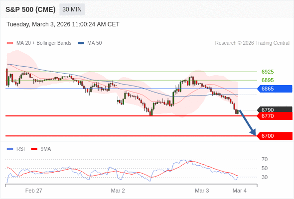 在 6865 之下,看跌,目标价位为 6770 ,然后为 6700 。