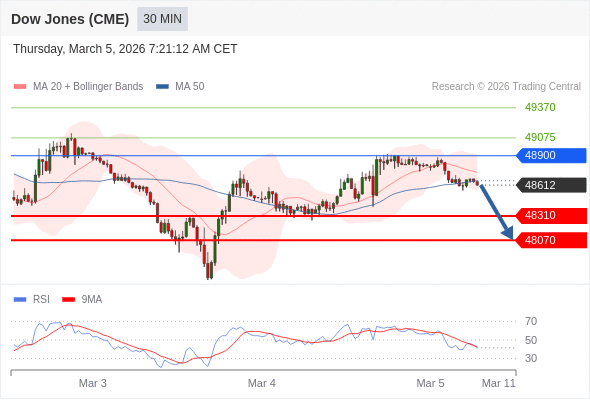 在 48900 之下,看跌,目标价位为 48310 ,然后为 48070 。