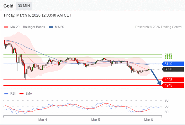 在 5140 之下,看跌,目标价位为 4995 ,然后为 4945 。