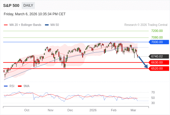 交易策略: 在 7000.00 之下,看跌,目标价位为 6630.00 ,然后为 6520.00 。