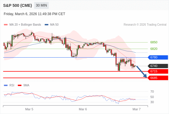 在 6780 之下,看跌,目标价位为 6715 ,然后为 6685 。