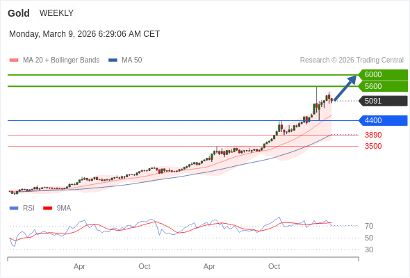 交易策略: 在 4400 之上,看涨,目标价位为 5600 ,然后为 6000 。
