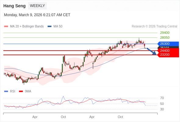 在 26300 之下,看跌,目标价位为 24400 ,然后为 23200 。
