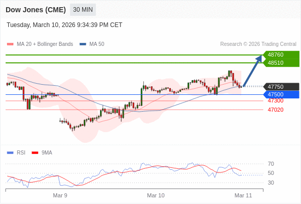 在 47500 之上,看涨,目标价位为 48510 ,然后为 48760 。
