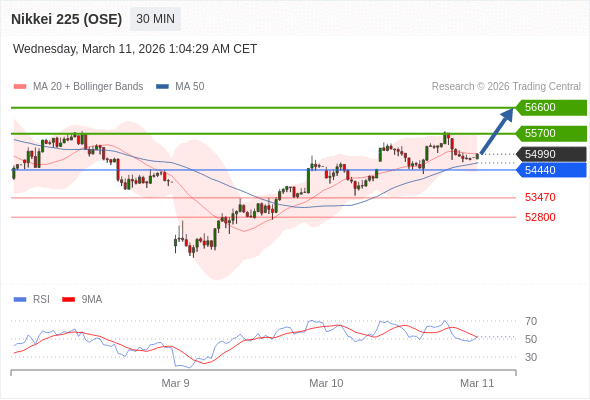 在 54440 之上,看涨,目标价位为 55700 ,然后为 56600 。