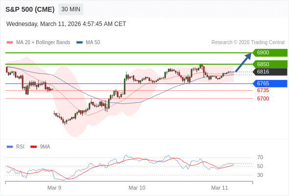 在 6765 之上,看涨,目标价位为 6850 ,然后为 6900 。