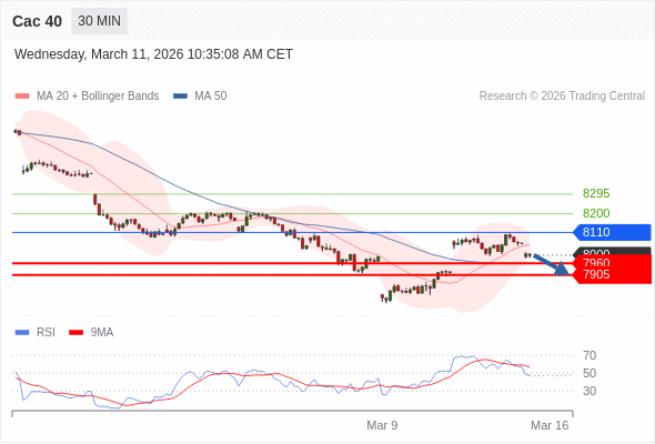 Cac 40 当日内: 谨慎操作。