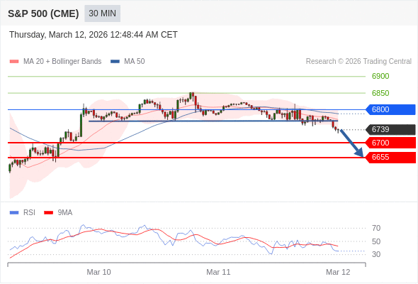 在 6800 之下,看跌,目标价位为 6700 ,然后为 6655 。