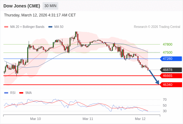在 47280 之下,看跌,目标价位为 46665 ,然后为 46340 。