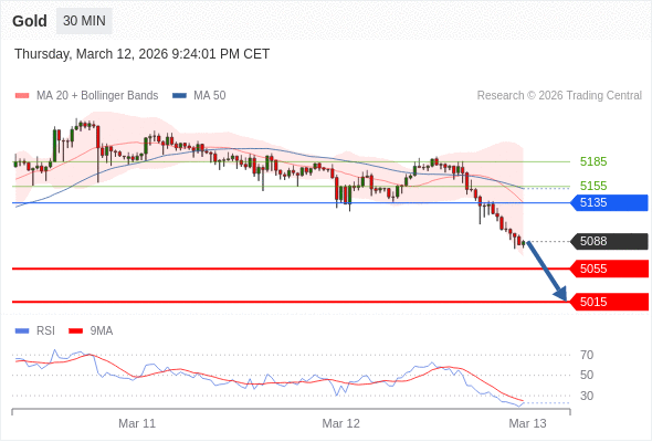 在 5135 之下,看跌,目标价位为 5055 ,然后为 5015 。