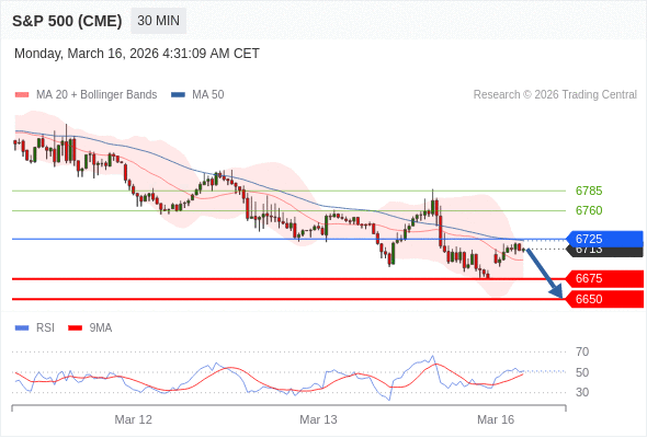 在 6725 之下,看跌,目标价位为 6675 ,然后为 6650 。