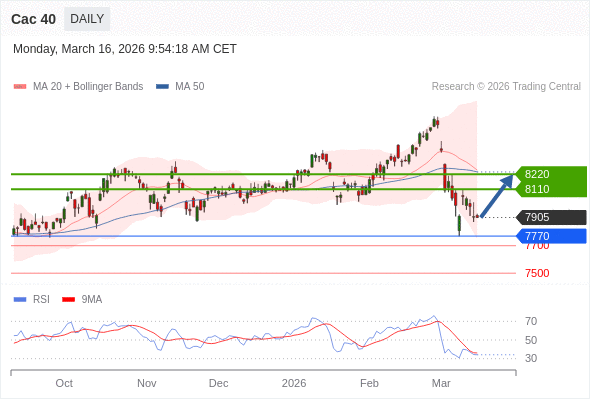 Cac 40 短线: 没有明显变化趋势。