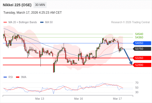 在 54050 之下,看跌,目标价位为 53260 ,然后为 52890 。