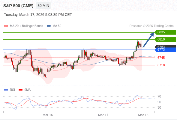 在 6773 之上,看涨,目标价位为 6810 ,然后为 6835 。