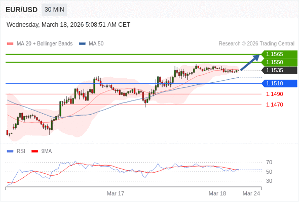 在 1.1510 之上,看涨,目标价位为 1.1550 ,然后为 1.1565 。