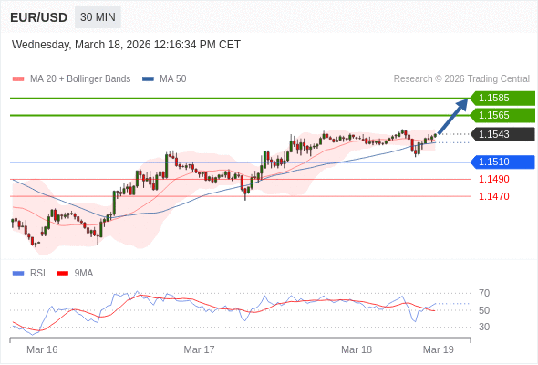 在 1.1510 之上,看涨,目标价位为 1.1565 ,然后为 1.1585 。