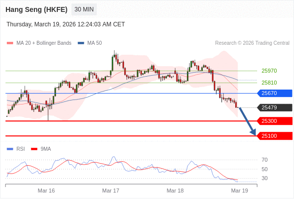 香港恒生指数期货 当日内: 目标位为25300。