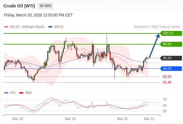在 94.00 之上,看涨,目标价位为 98.50 ,然后为 100.50 。