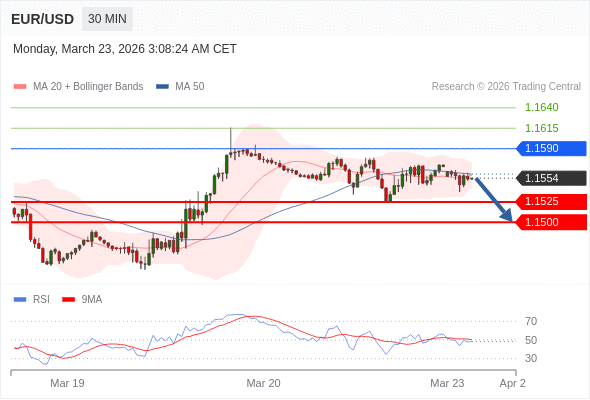 交易策略: 在 1.1590 之下,看跌,目标价位为 1.1525 ,然后为 1.1500 。