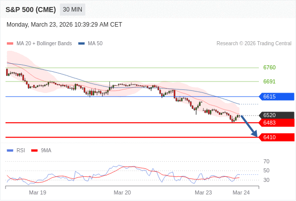 在 6615 之下,看跌,目标价位为 6483 ,然后为 6410 。